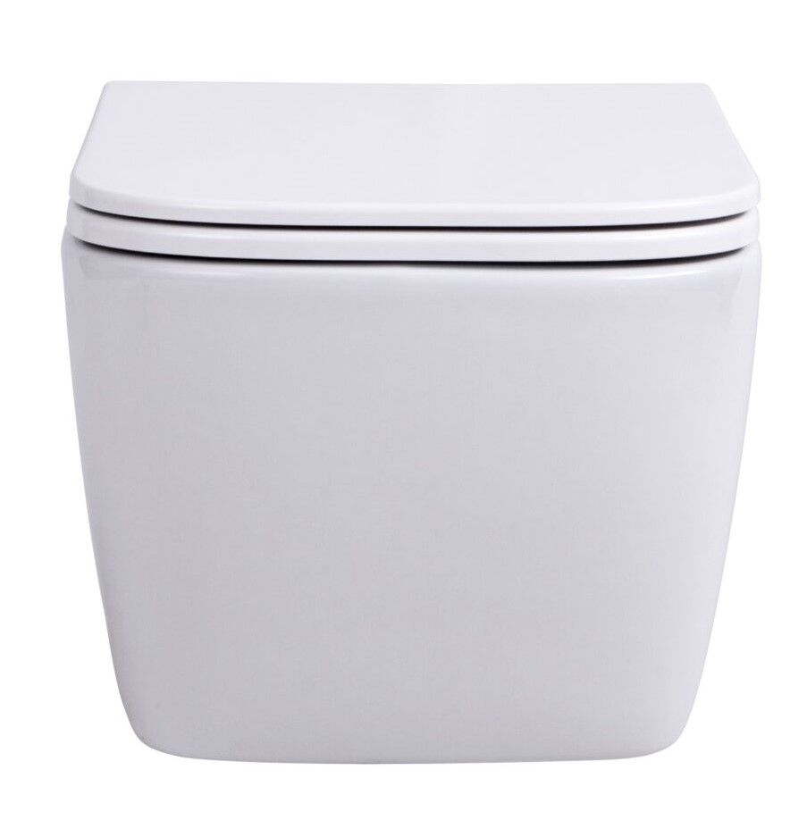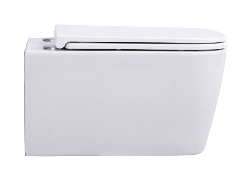 Подвесной безободковый унитаз с системой скрытого монтажа, крышкой-сидением из дюропласта с функцией soft-close и quick release.