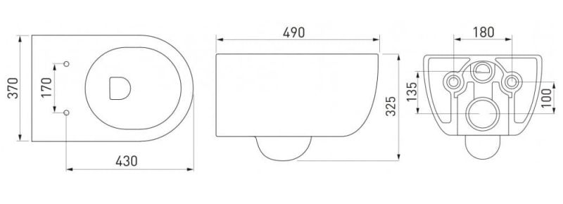 • Прилегание унитаза к стене: