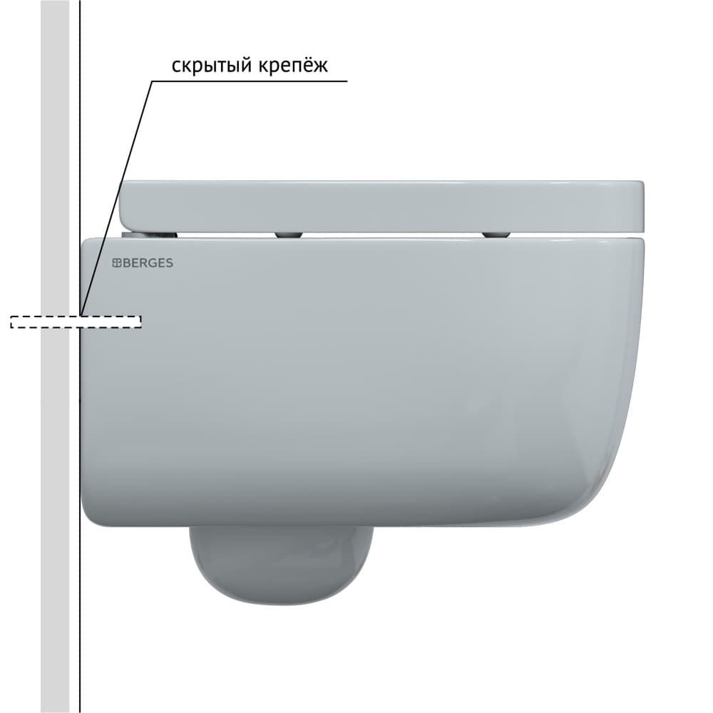 Подвесной унитаз Berges EGO Rimless белый 082122 сиденье Toma SO микролифт быстросъёмное купить