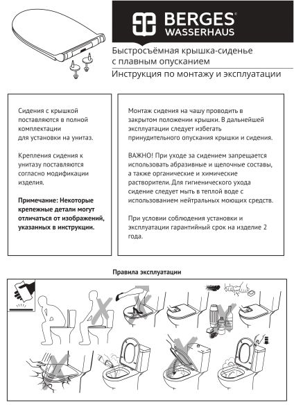 Качественный унитаз может стать настоящим украшением вашего санузла. И если вы ценитель оригинальных дизайнерских концепций и беспрецедентного качества, то унитазы Berges Wasserhaus точно придутся вам по душе. Этот немецкий бренд радует потребителя своей продукцией уже много лет. За это время мастерство, с которым производится эта сантехника, достигла непревзойденных высот.Унитаз Berges Wasserhaus бесподобно будет гармонировать в любой туалетной комнате, как в миниатюрном помещении, так и в просторном. Подвесной унитаз прекрасно сэкономит пространство ванной комнаты, и позволит более удачно разместить другие сантехнические предметы.Марка Berges Wasserhaus выпускает сантехнику высокого качества с использованием сертифицированного оборудования и отборных материалов. Унитаз Berges Wasserhaus выгодное решение для стильной ванной комнаты.FLOE S Rimless 51 смБезободковая система смываСкрытый крепежЭкономия водыСиденье дюропласт Floe S Slim SO:микролифт, быстросъем.