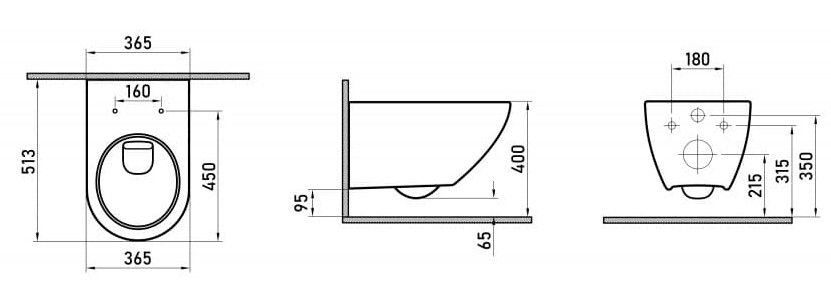 • Прилегание унитаза к стене: