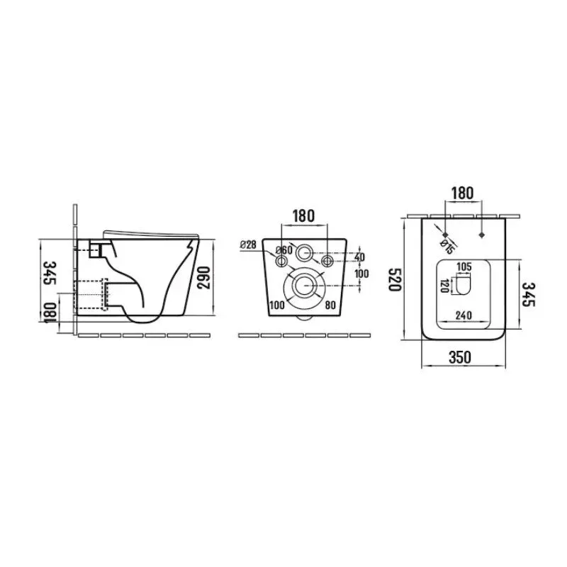 • Прилегание унитаза к стене: