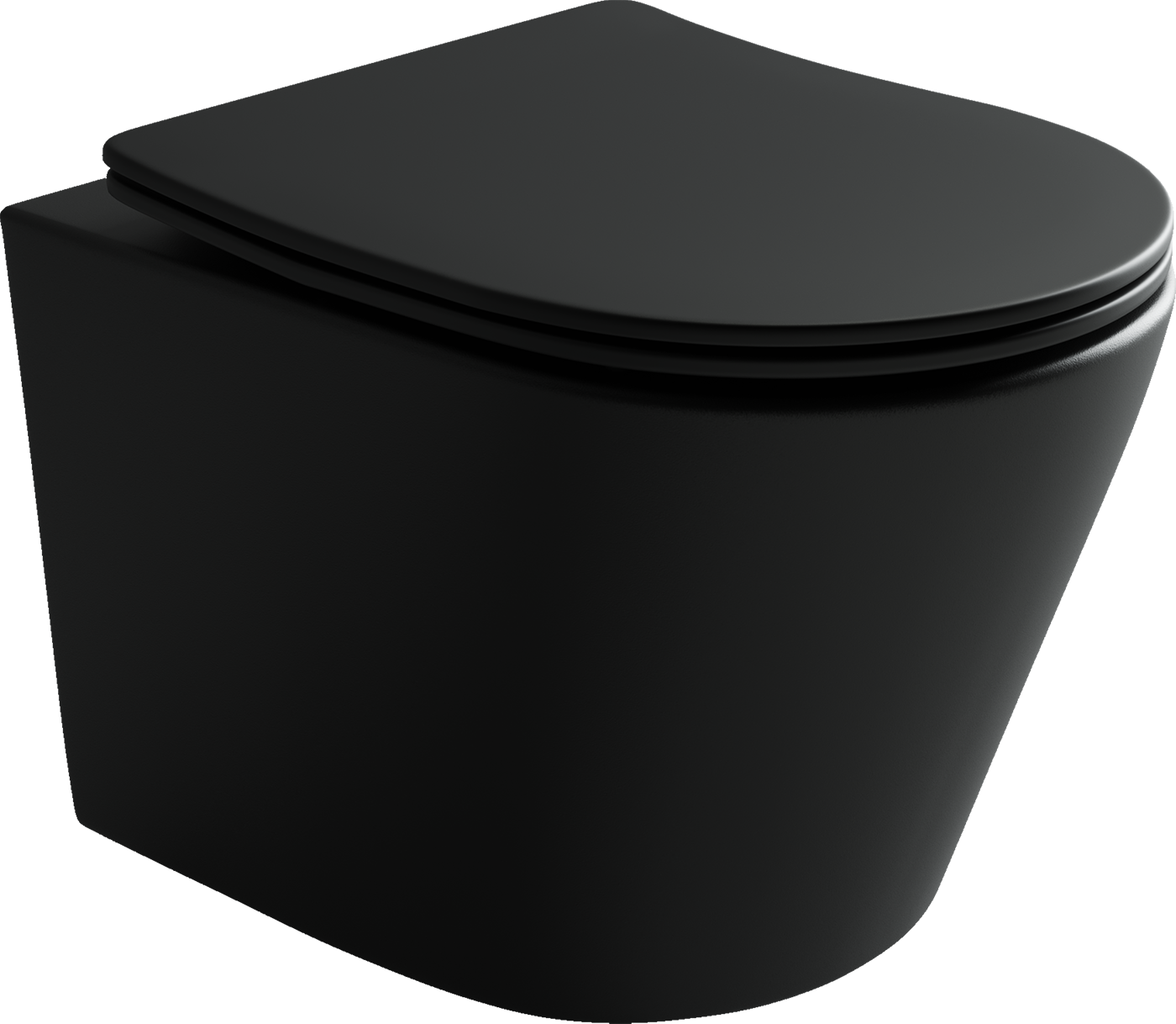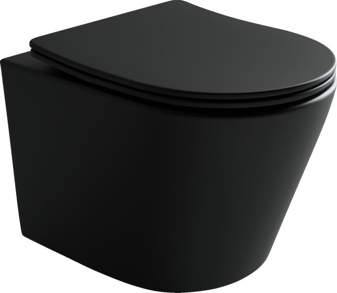 Подвесной унитаз Balearica Rimless (цвет Чёрный Матовый), глубокий смыв, с крепежом для полностью скрытого монтажа, ультра тонким с сидением и крышкой с функцией плавного закрытия, дюропласт