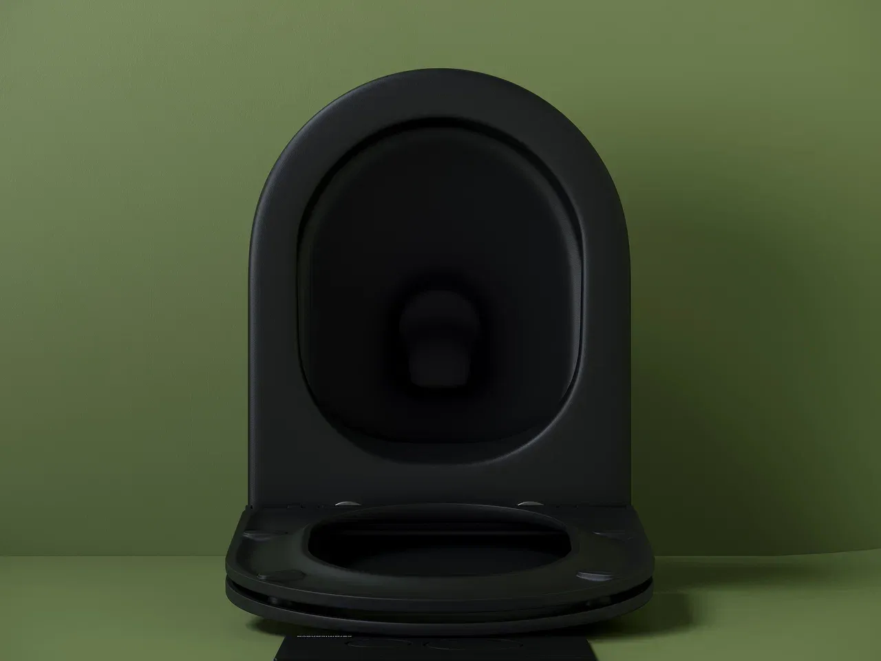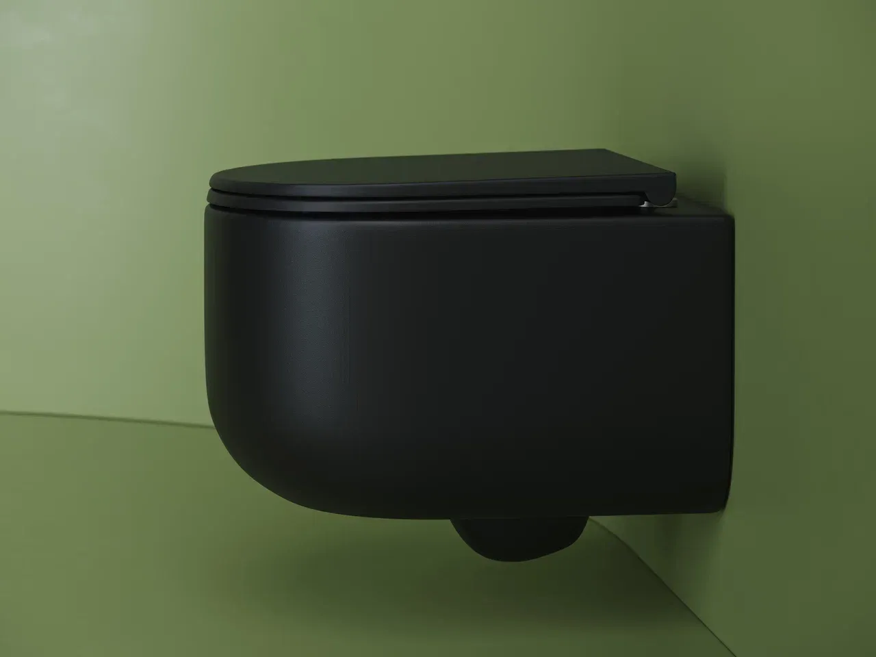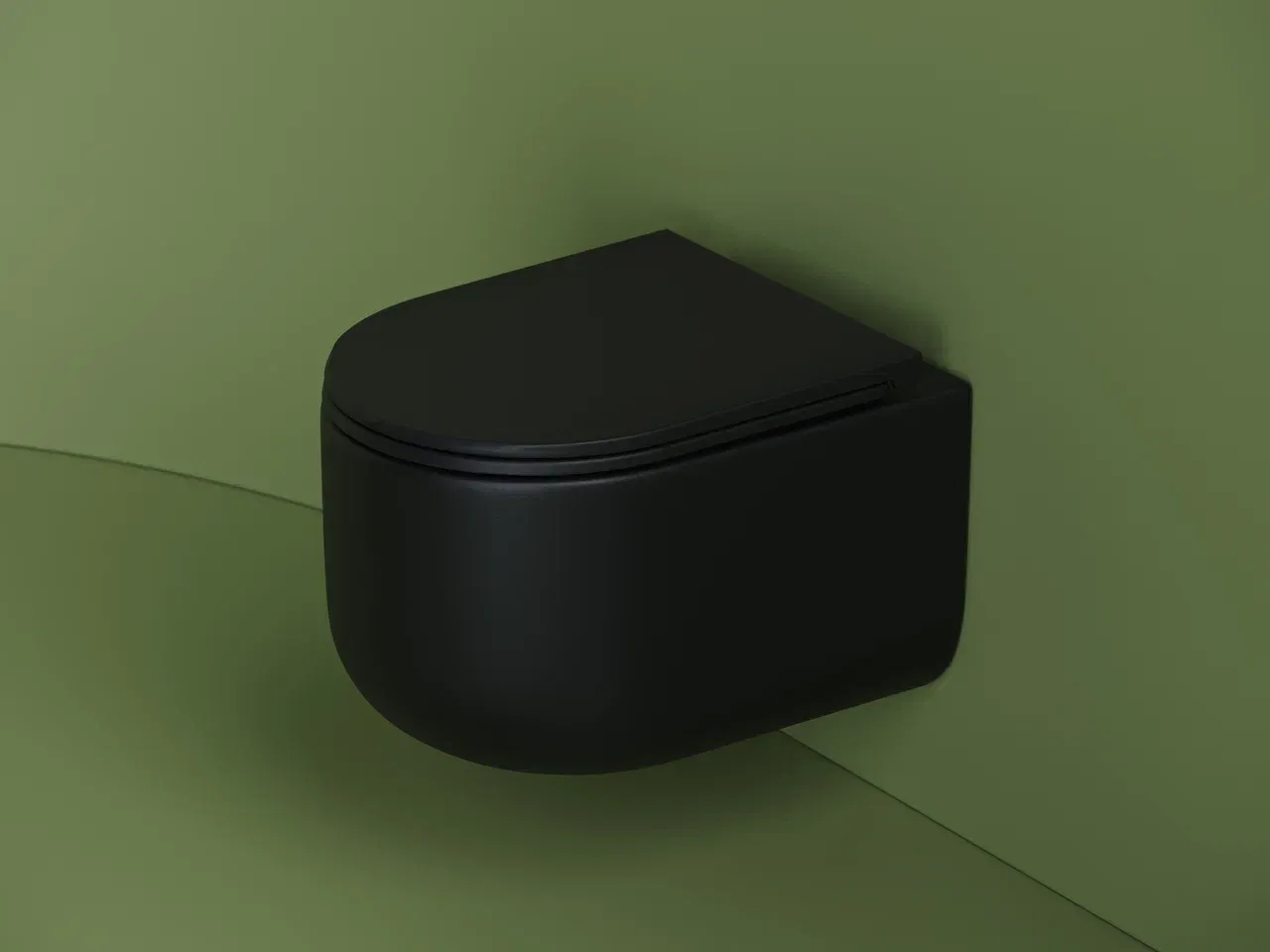 Подвесной унитаз Ulma Rimless, глубокий смыв, с крепежом для полностью скрытого монтажа, ультра тонким с сидением и крышкой с функцией плавного закрытия (цвет чёрный матовый)