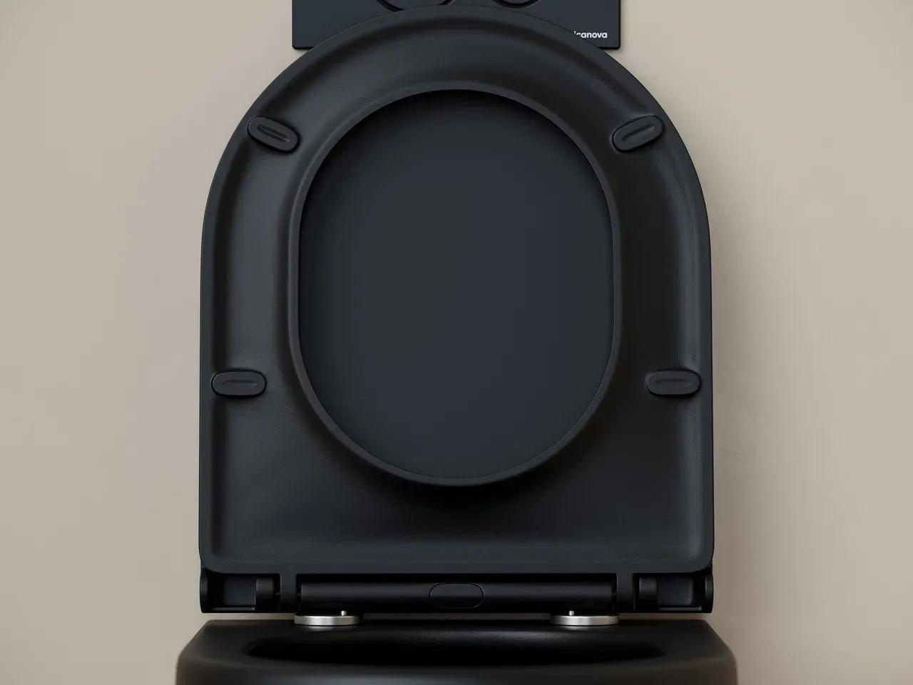 Подвесной унитазUP Rimless, смыв Торнадо, с крепежом для полностью скрытого монтажа, ультра тонким с сидением и крышкой с функцией плавного закрытия, цвет чёрный матовый