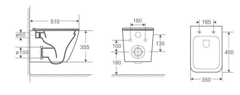 Прилегание унитаза к стене:вплотную