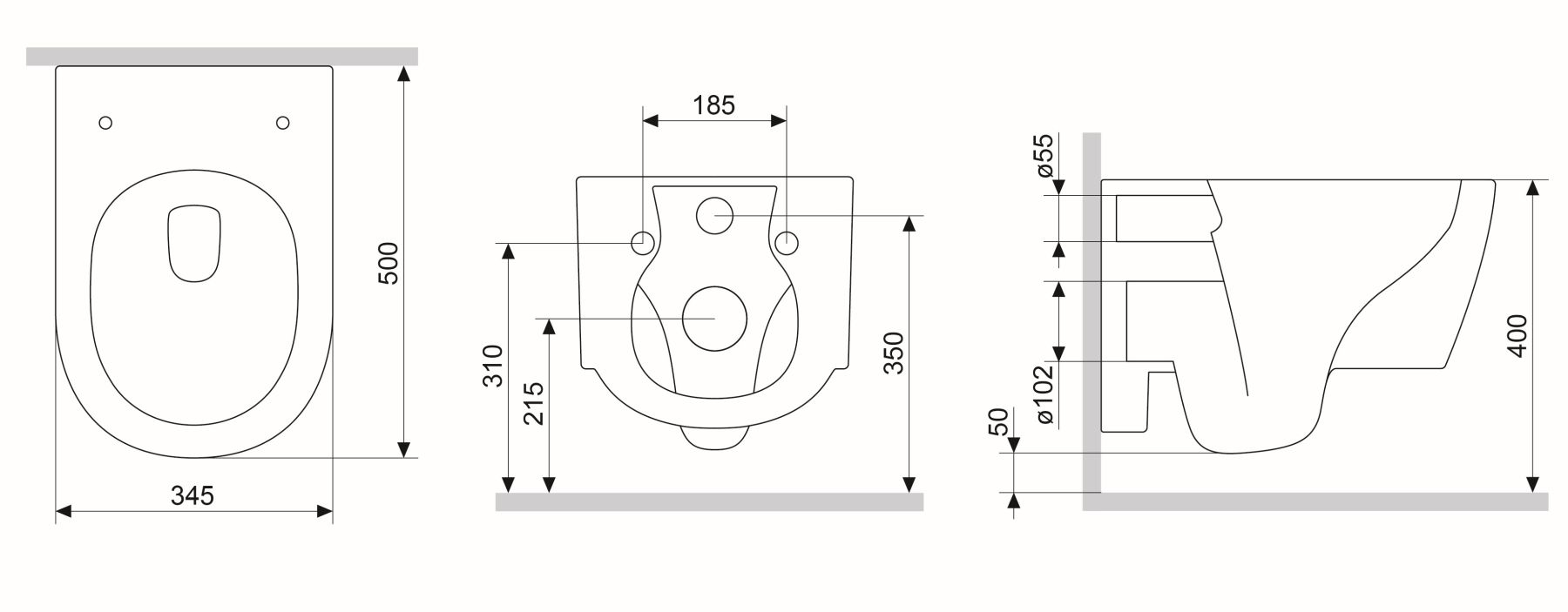 • Прилегание унитаза к стене: