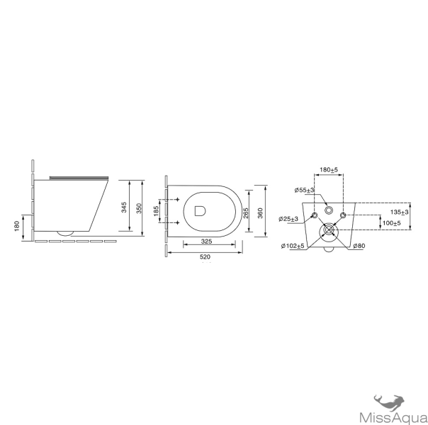 • Прилегание унитаза к стене: