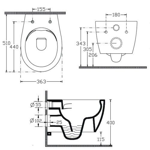• Укороченный унитаз: