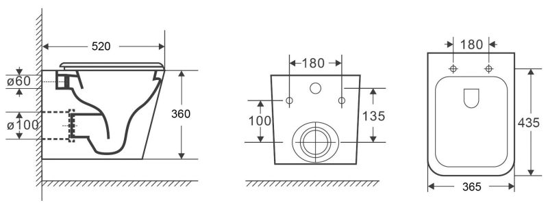 • Прилегание унитаза к стене: