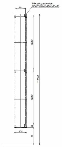 Габариты (ШxВxД): 150x1300x125 мм.