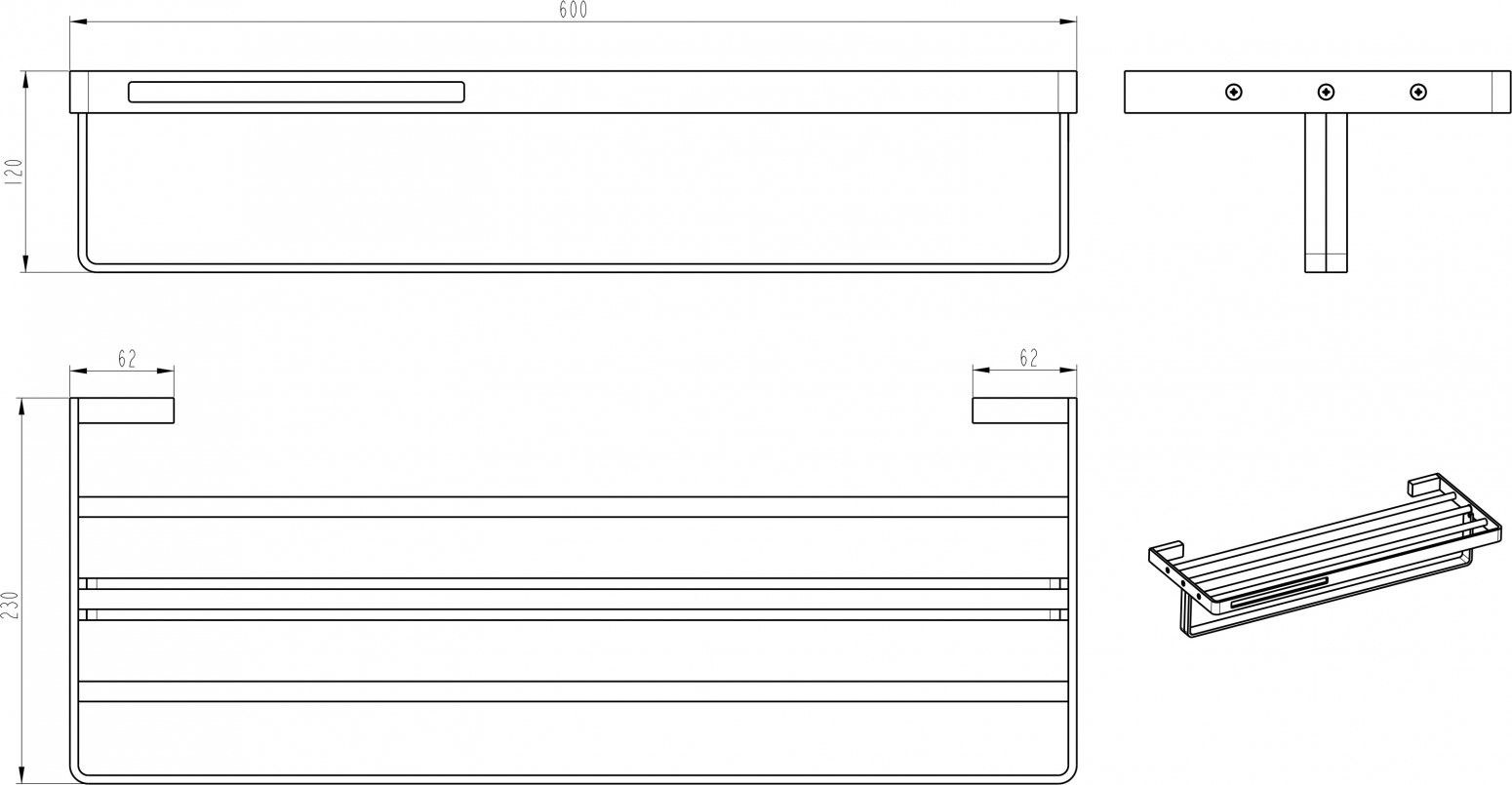 Полка Boheme Q 10947-G-B для полотенец восхитительно подойдет как для просторного помещения, так и для небольшой ванной комнаты. Серия Q отличается превосходным дизайном с соблюдением всех важных элементов современного стиля.Бренд Boheme в своей продукции использует идеальное, сочетание материалов (латунь) высокого качества, с абсолютным отсутствием вредных для здоровья веществ. Золото / черный, основной цвет исполнения Boheme Q, гармонирующий с большинством интерьерных решений. Ключевые габариты изделия: ширина 60 см, глубина 23 см, высота 12 см. Прямоугольная форма 10947-G-B прослеживается во всех линиях и придает аксессуару неповторимый стиль. Полка размещается в особо удобном положении на стене благодаря подвесному способу установки.Страной бренда Boheme является Италия, все товары производятся с выполнением соответствующих стандартов качества, что позволяет быть полностью уверенными в долговечности и надежности. Полка Boheme Q 10947-G-B для полотенец правильный выбор в современном дизайне ванной, придающий уникальность всему помещению, при этом сохраняя функциональность.