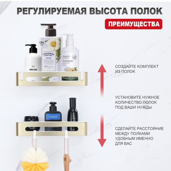 Полка для ванной комнаты Raglo R340.02.03, золотой сатин. Размер: 30x13x6,5 см. Тип крепления: н... Подробнее