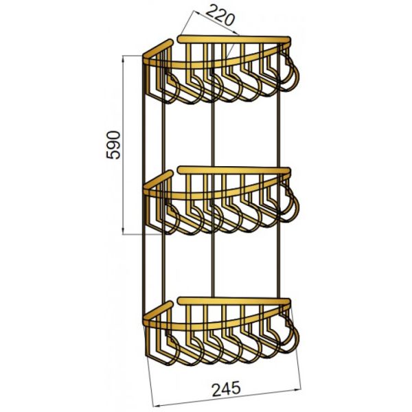 Полка Boheme Imperiale 10428 не только несравненное украшение для санузла, но и отличное функциональное решение любой ванной комнаты. Серия Imperiale отличается превосходным дизайном с соблюдением всех серьезных элементов стиля ретро.Производитель Boheme предлагает безупречное, сочетание материалов (латунь) высокого качества, с абсолютным отсутствием вредных для здоровья веществ. Золото, основной цвет исполнения Boheme Imperiale, безупречно впишется в любой дизайн проект. Важные габариты изделия: ширина 24.5 см, глубина 22 см, высота 59 см. Угловая форма 10428 прослеживается во всех линиях и придает аксессуару неповторимый стиль. Полка размещается в наиболее удобном положении на стене благодаря подвесному способу установки.Италия родина бренда Boheme, вся продукция производится со строгим соблюдением всех стандартов, благодаря чему можно быть абсолютно уверенным в надежности и высоком качестве. Полка Boheme Imperiale 10428 это абсолютный комфорт в современной ванной комнате.