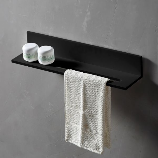 Полочка для ванной комнаты ABBER Stein AS1655MB с полотенцедержателем 60см чёрный матовый купить