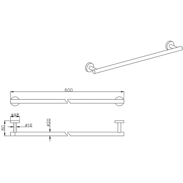 Габариты (ШхВхД): 600х48х80 мм.