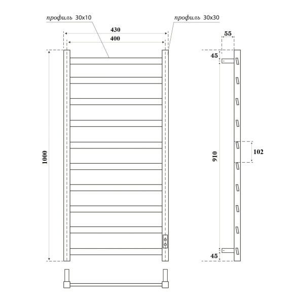 Полотенцесушитель электрический APEXTERMO Galaxy GL00104WM 1000x400, белый матовый