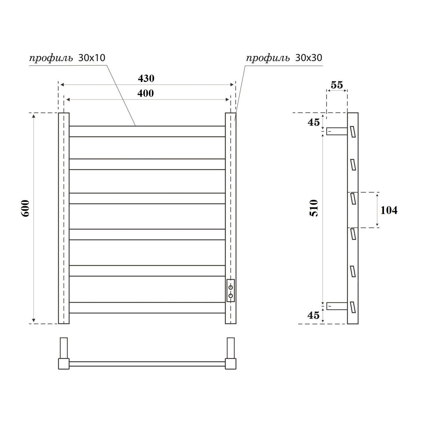 Полотенцесушитель электрический APEXTERMO Galaxy GL00164BM 600x400 черный матовый