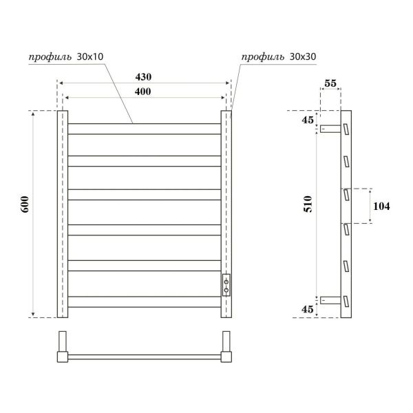Полотенцесушитель электрический APEXTERMO Galaxy GL00164BM 600x400 черный матовый купить
