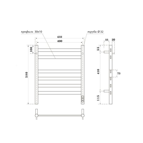 Полотенцесушитель электрический APEXTERMO Sfera SF10164BM 600x400 с крючками черный матовый
