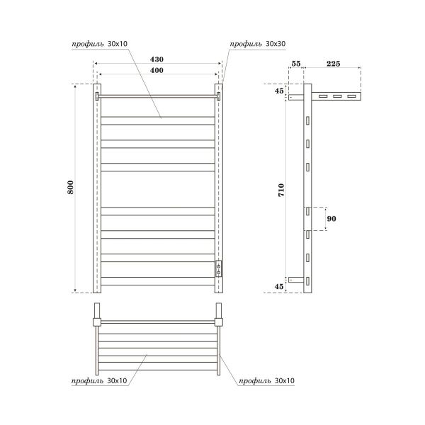 Полотенцесушитель электрический APEXTERMO Terra TR01184BM 800x400 с полкой черный матовый купить
