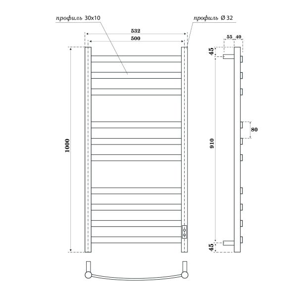 Полотенцесушитель электрический APEXTERMO Umbra UM00105BM 1000x500 черный матовый Подробнее