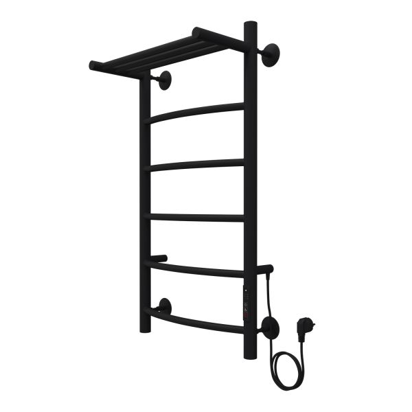 Полотенцесушитель электрический AZARIO VERONA AZ04848PB 400/800 5 секций, с полкой, тен справа, черный