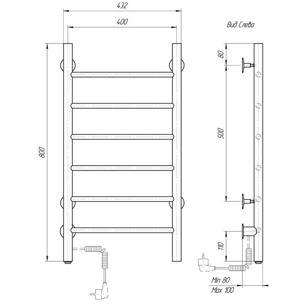 М/о расстояние (межосевое расстояние): 400Количество перекладин: 6Коллекция: АврораТип: электрическиеЦвет: белыйМощность, Вт: 53Ширина (мм): 432Высота (мм): 800Глубина (мм): 80-100Вес: 4,42Объем: 0,0495Тэн/подключение: слеваСтрана: РоссияГарантия: 2 года