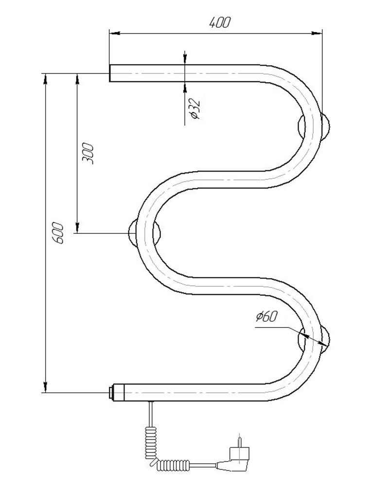 Электрический полотенцесушитель М-образный из нержавеющей стали.
