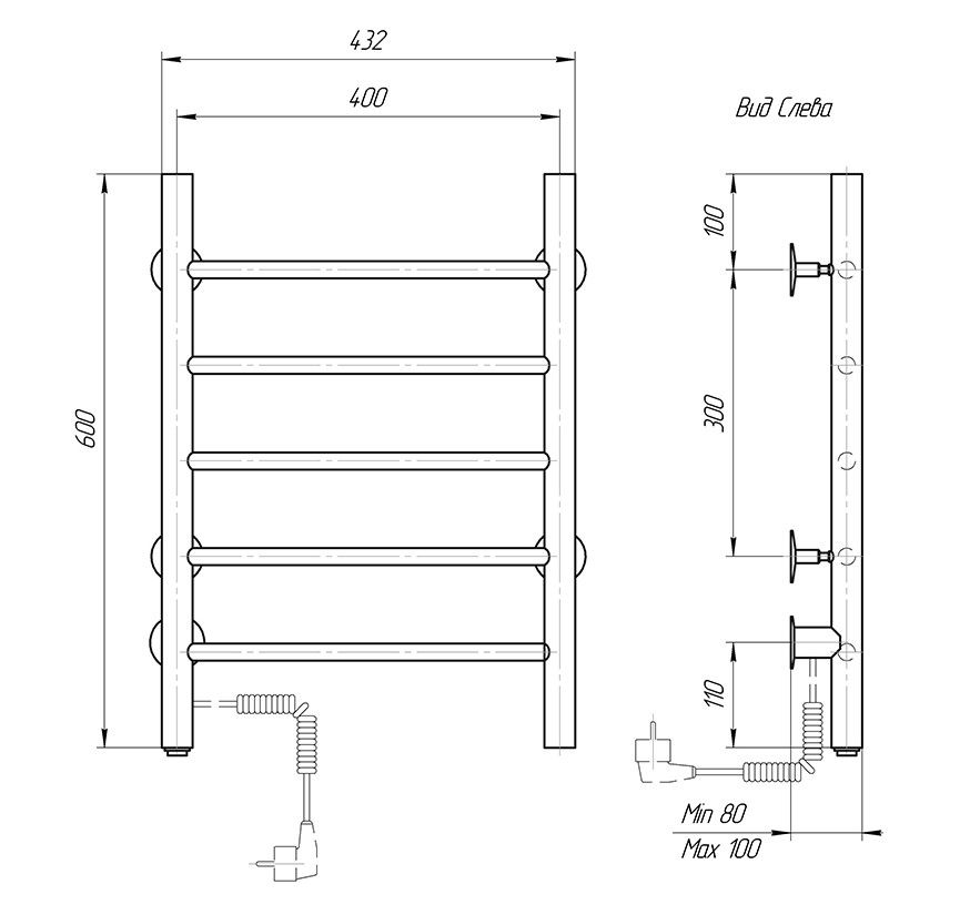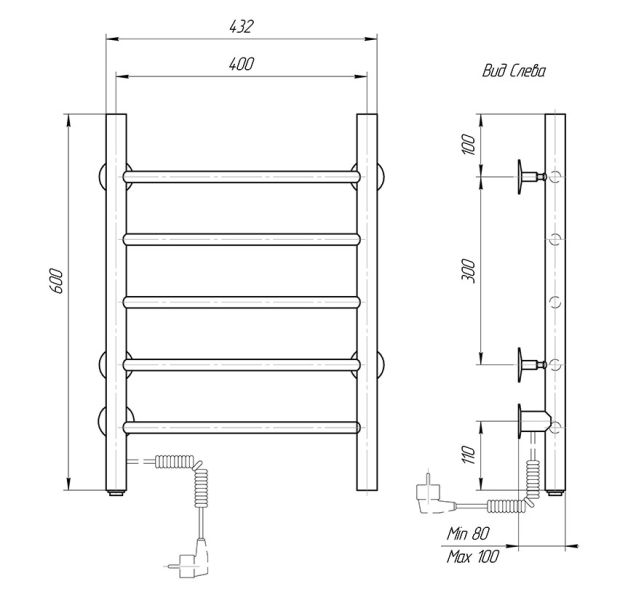 М/о расстояние (межосевое расстояние): 400Количество перекладин: 5Коллекция: КлассикТип: электрическиеЦвет: черныйМощность, Вт: 46Ширина (мм): 432Высота (мм): 600Глубина (мм): 80/100Вес: 3,41Объем: 0,035Страна: РоссияГарантия: 2 года