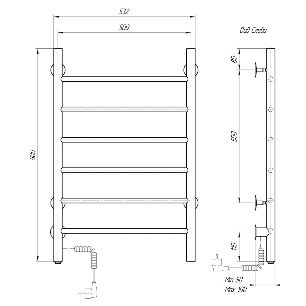 Количество перекладин: 6Коллекция: КлассикТип: электрическиеЦвет: белыйМощность, Вт: 72Ширина (мм): 532Высота (мм): 800Глубина (мм): 80-100Вес: 4,86Объем: 0,07425Тэн/подключение: слеваСтрана: РоссияГарантия: 2 года