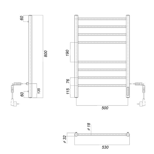 М/о расстояние (межосевое расстояние): 500Количество перекладин: 8Коллекция: МедеяТип: электрическиеЦвет: хромМощность, Вт: 110Ширина (мм): 532Высота (мм): 800Глубина (мм): 83-93Вес: 5,85Объем: 0,04Тэн/подключение: справаСтрана: РоссияГарантия: 2 года