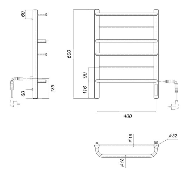 М/о расстояние (межосевое расстояние): 400Количество перекладин: 6Коллекция: ОрфейТип: электрическиеЦвет: черныйМощность, Вт: 85Ширина (мм): 432Высота (мм): 600Глубина (мм): 165-175Вес: 3,8Объем: 0,024Тэн/подключение: справаСтрана: РоссияГарантия: 2 года