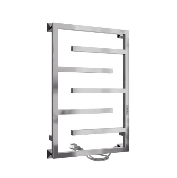 Полотенцесушитель электрический INDIGO Delos в размере 800х500 (ВхШ) выбирают за его технологичность и дизайн-форму. Модель имеет терморегулятор нагрева, у которого три режима: 40, 45, 50 градусов и таймер на отключение через 2, 4, 6 часов. Универсальность изделия предусматривает подключение через прямой провод или скрытое подключение без покупки дополнительного переходника. Длина прямого провода 1,1 метра. Полотенцесушитель относится к энергоэффективным изделиям, потребляемая мощность в данном размере 120 Вт. Специальная технология нагревательного кабеля защищает полотенцесушитель от перегрева, что влияет на длительные сроки службы.