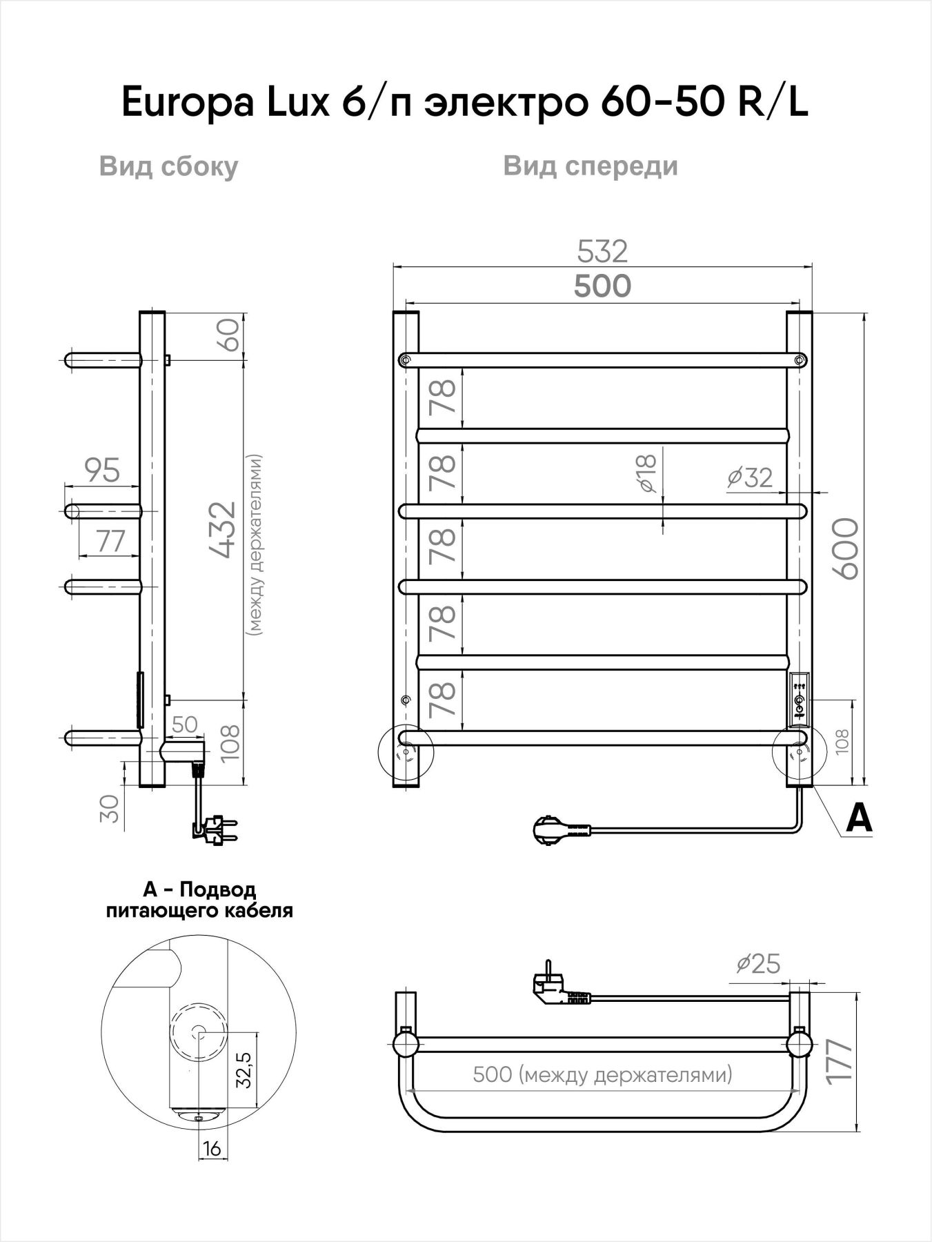 Полотенцесушитель электрический Indigo Europe Lux LELLE60-50BRRt 60x50 см чёрный муар купить