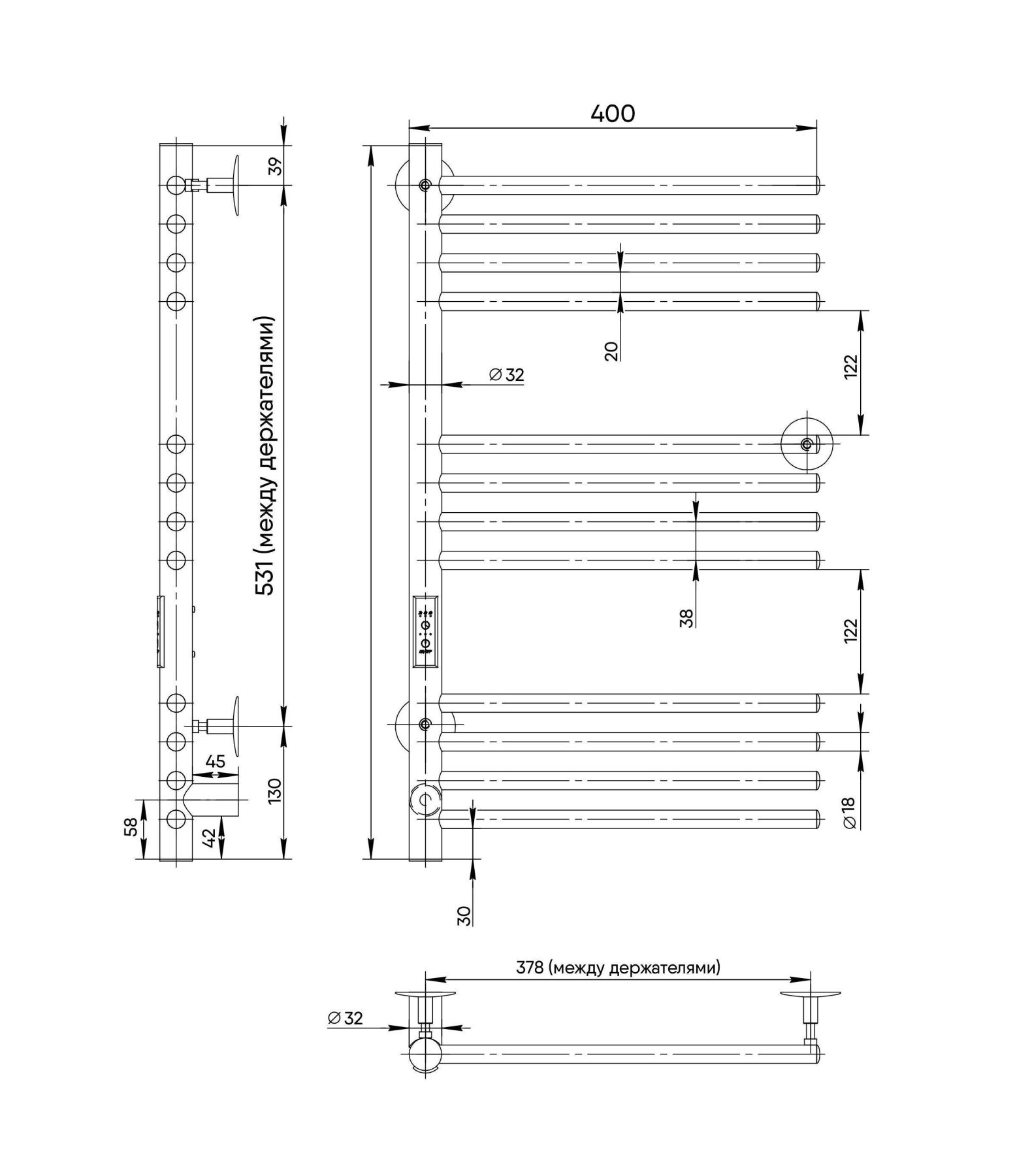 Полотенцесушитель электрический INDIGO Family хром. Полотенцесушитель с одной стойкой, имеет 3 д... Подробнее