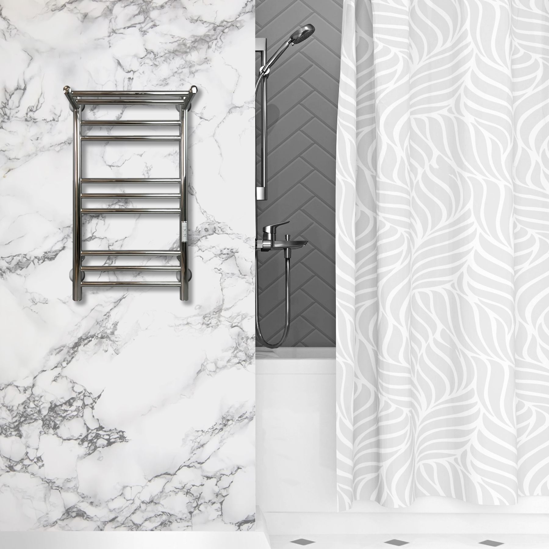 Модель имеет терморегулятор нагрева, у которого три режима: 40, 45, 50 градусов и таймер на отключение через 2, 4, 6 часов.  Полотенцесушитель с терморегулятором удобен тем, что температуру можно настроить в зависимости от вашего комфортного самочувствия.