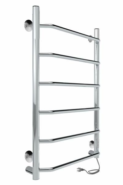 Универсальное изделие - предусматривает подключение через прямой провод, который переставляется на нужную вам сторону или скрытое подключение без покупки дополнительного переходника. Длина провода 1,1 метра. Полированный полотенцесушитель подходи под любой интерьер ванной комнаты, отлично сочетается с хромированной сантехникой.