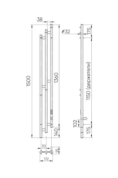 Полотенцесушитель электрический Indigo Sky LSKE150-17Rt 150x17 см хром