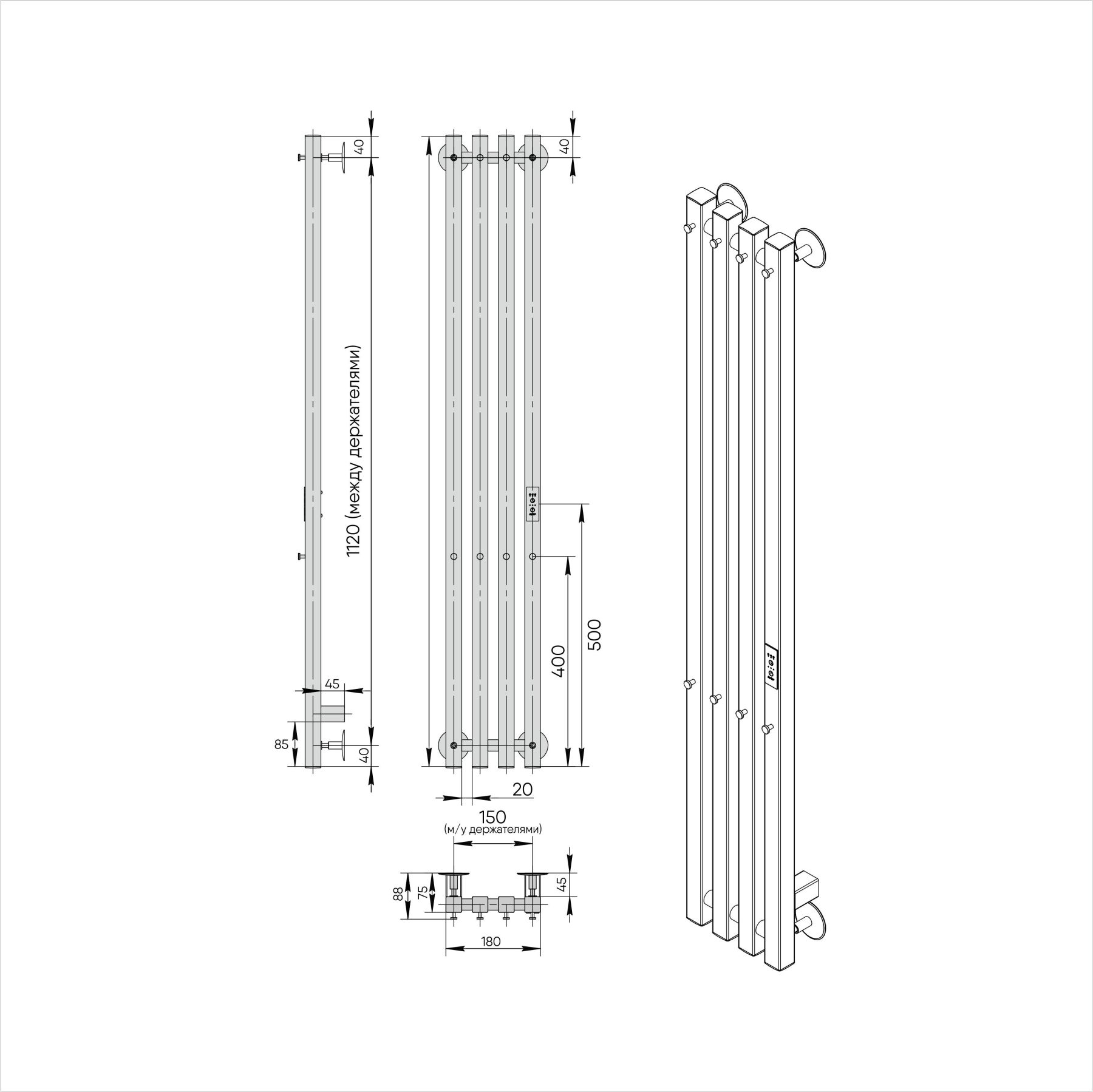Полотенцесушитель электрический INDIGO Style, в цвете Черный Муар, имеет четыре стойки с крючкам... Подробнее