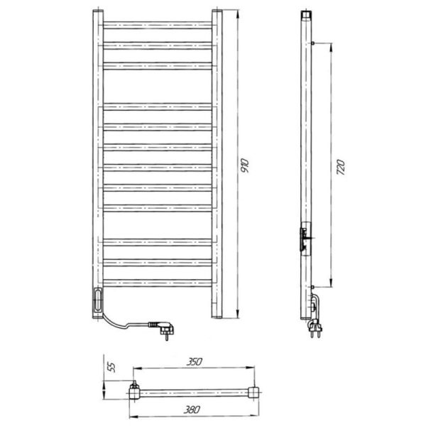 Полотенцесушитель электрический Laris Астор ЧКЧ12 350х900 L 73207664 Черный муар