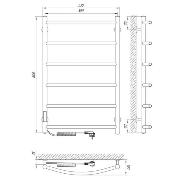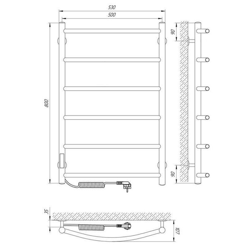 Модель: КлассикКод товара: 73207391Материал: сталь нержавеющая AISI304Диаметры и толщина: стойка Ø32, толщина 1,5 мм; перемычка Ø20, толщина 1 ммРегулятор: на стойке (программируемый регулятор)Терморегулятор: даТаймер: даВозможность скрытого монтажа: да (приобретается отдельно)Размещение шнура: слева (Также есть исполнение с правым подключением)Температура поверхности изделия*: 50±5°CНапряжение питания: 220 ВВес: 5,86 кгКомплектация: