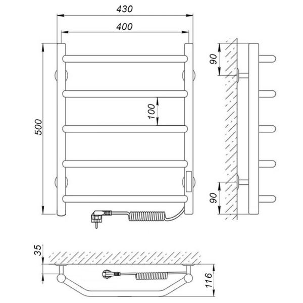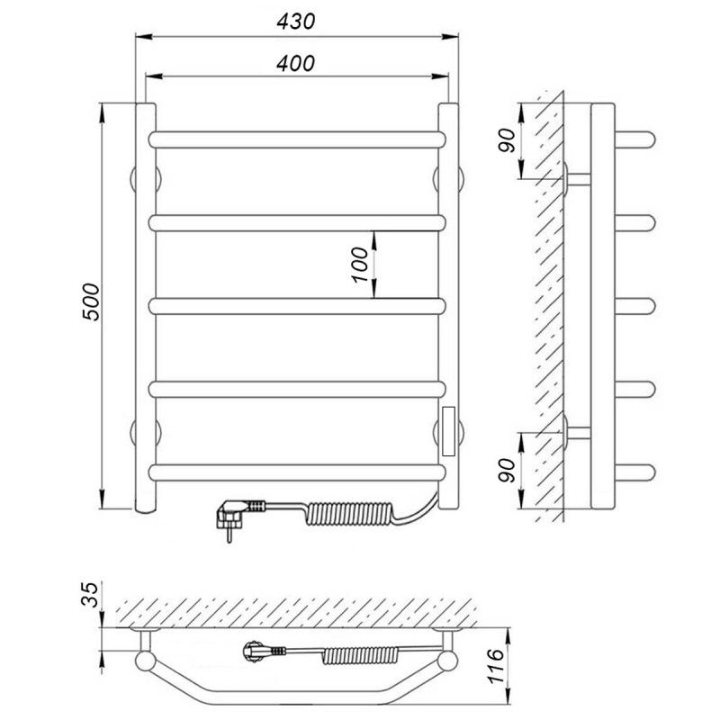 Модель: ВикторияКод товара: 73207637Материал: сталь нержавеющая AISI304Диаметры и толщина: стойка Ø32, толщина 1,5 мм; перемычка Ø20, толщина 1,5 ммРегулятор: на стойке (программируемый регулятор с таймером)Терморегулятор: даТаймер: даВозможность скрытого монтажа: да (приобретается отдельно)Размещение шнура: справа (Также есть исполнение с левым подключением)Температура поверхности изделия*: 50±5°CНапряжение питания: 220 ВВес: 4 кгКомплектация: