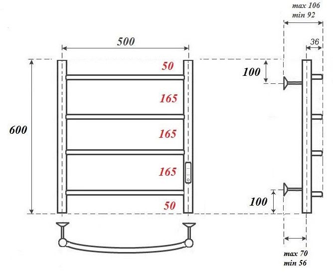 Полотенцесушитель электрический Point Афина PN04856 П4 500x600 диммер справа, хром