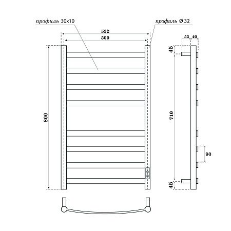 Полотенцесушитель электрический Point Антея PN17858W П8 500x800, диммер справа, белый купить