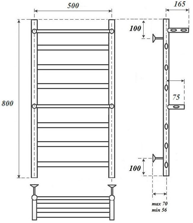Коллекция Артемида отличается сочетанием круглого профиля для стоек и овального профиля для перекладин.Электрические полотенцесушители Артемида выполнены из нержавеющей стали AISI 304L с толщиной стенки 2,0 мм в трех размерах 500x600, 500х800 и 500х1000 мм.