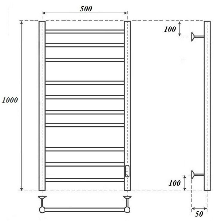 Полотенцесушитель электрический Point Аврора PN10850W П10 500x1000 диммер справа, белый Подробнее