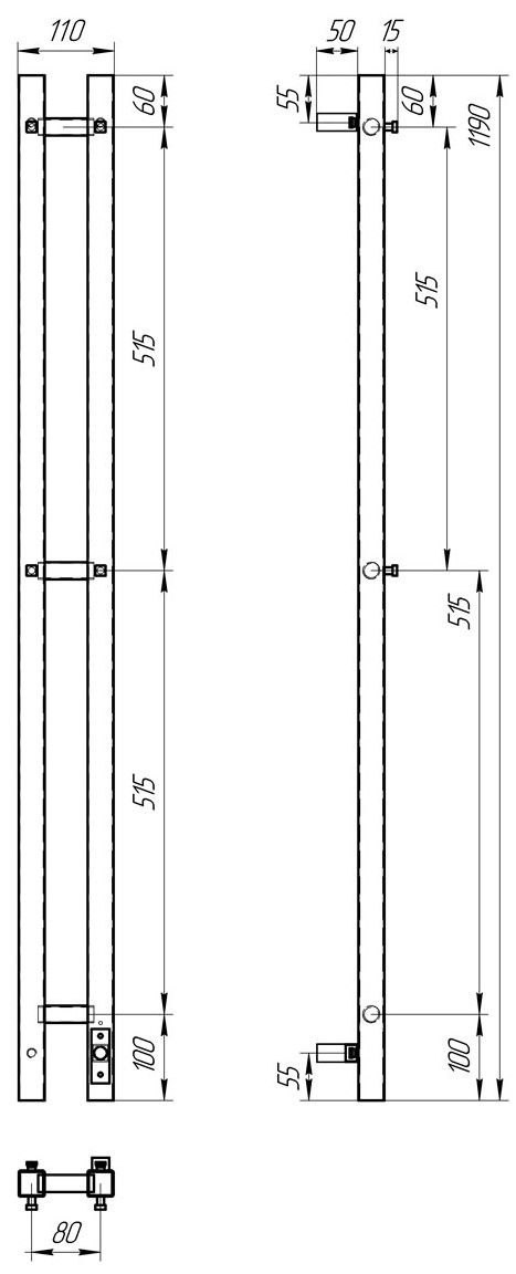 Выполнены из квадратного профиля 30х30 мм, размер 80x1200 в трех вариантах цвета: хром, черный матовый, белый матовый.