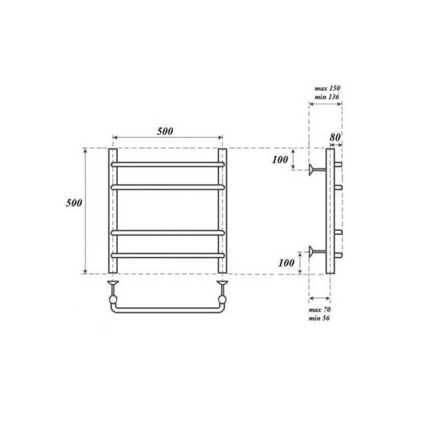 Полотенцесушитель электрический Point PN09155E П4 500x500 левый/правый, хром Подробнее