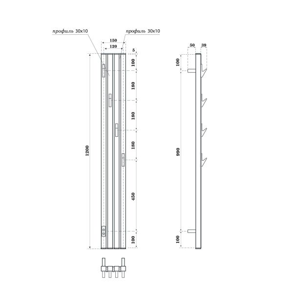 Полотенцесушитель электрический Point Пиано PN19722BGB 150x1200 диммер слева черный/графит блеск купить